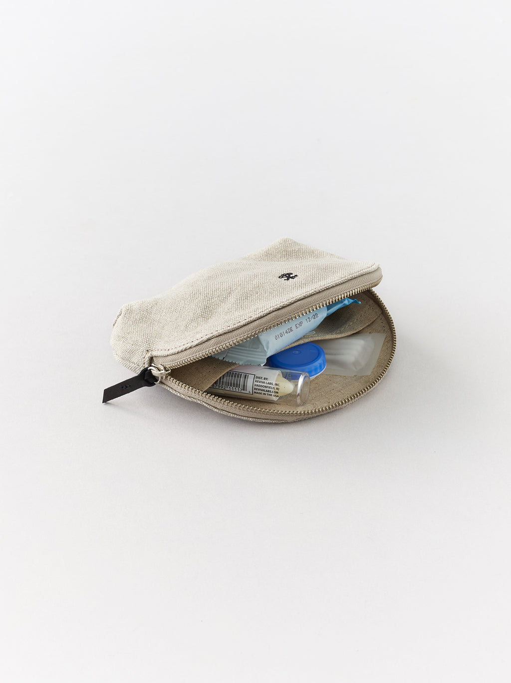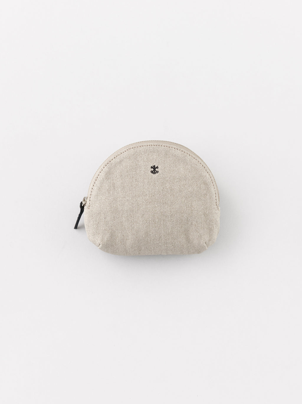 A&S定番リネン生地Authentic linenよりも、ライトな肉感のAuthentic linen lightを使用したラウンド型ポーチのSサイズ。立体的なつくりによるマチを活かし、細々としたものが収納でき持ち運びにも便利。内側には仕切りポケットがひとつ備わる。カギマークの刺繍入り。