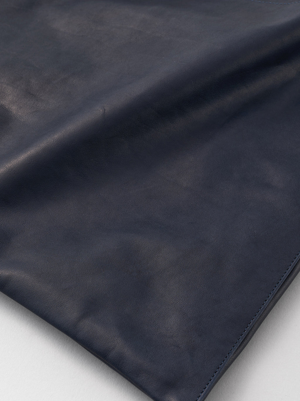 トルコのタンナーにより、トルコ産の小柄で繊維密度の高い原皮を、環境に配慮した白鞣し(クロムフリー)で仕上げた革。もっちりとした滑らかな肌ざわりにするために、染色加脂の工程で20~30%も革を縮め、さらに繊維の詰まった革にしている。染料素上げのため、ナチュラルで優しい表情、そもそもの革の風合いを楽しめる。