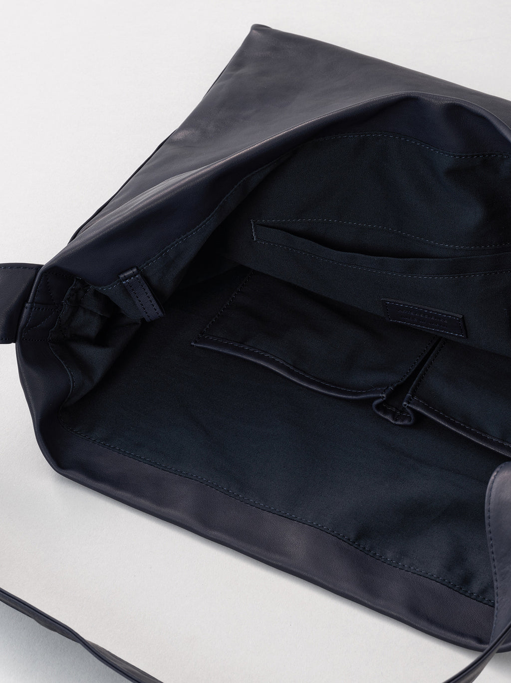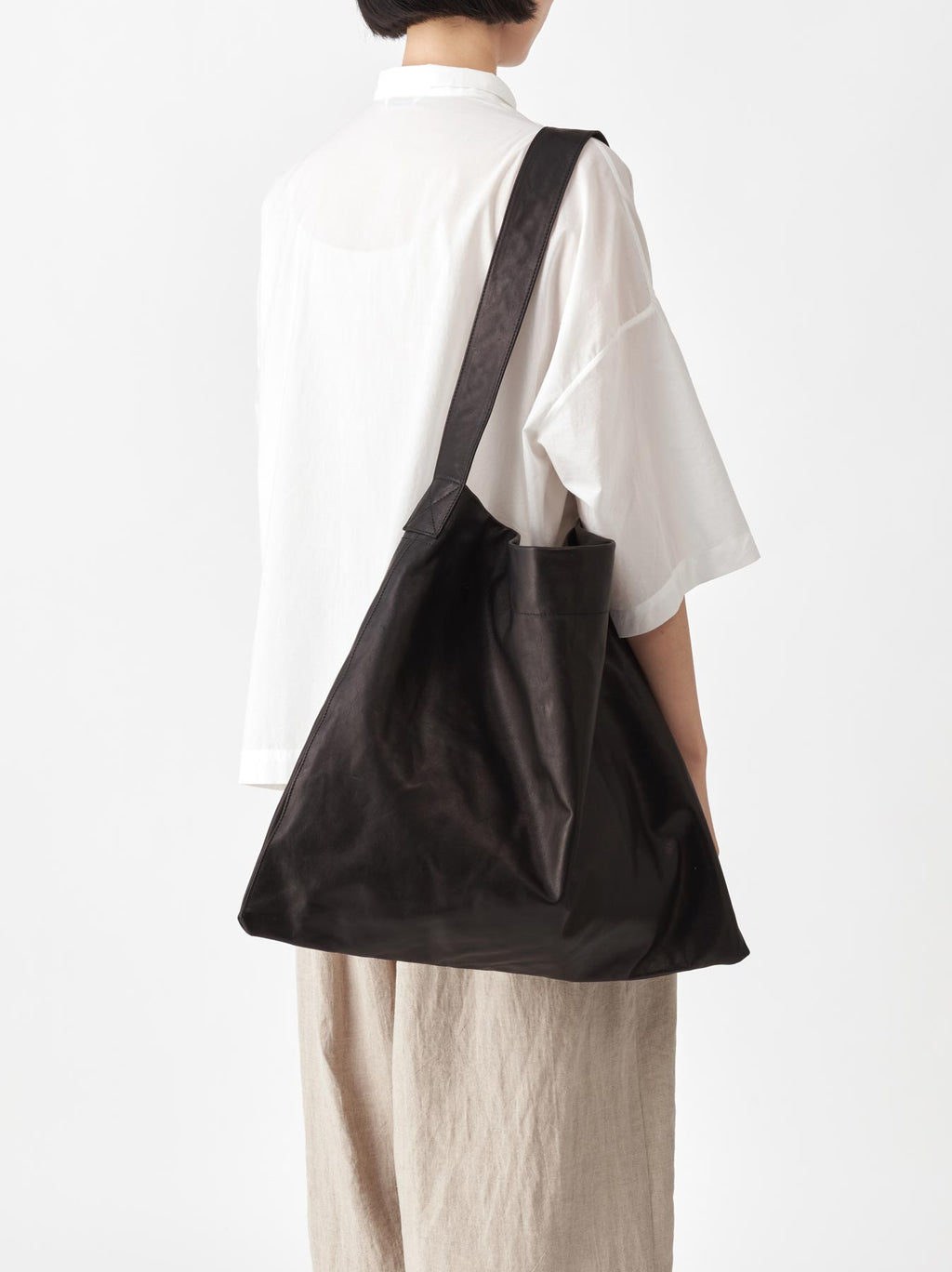 もっちりとした滑らかな肌触りのキップレザーを使用した、ワンショルダートートのLサイズ。Lサイズは書類やPCなども収納できるサイズ感。ロングタイプの持ち手は斜めがけとしても使用することができる。染料素上げのため、ナチュラルで優しい表情、そもそもの革の風合いを楽しめる。内側にはポケットが3つとキーホルダー等が付けられるレザーループが付く。