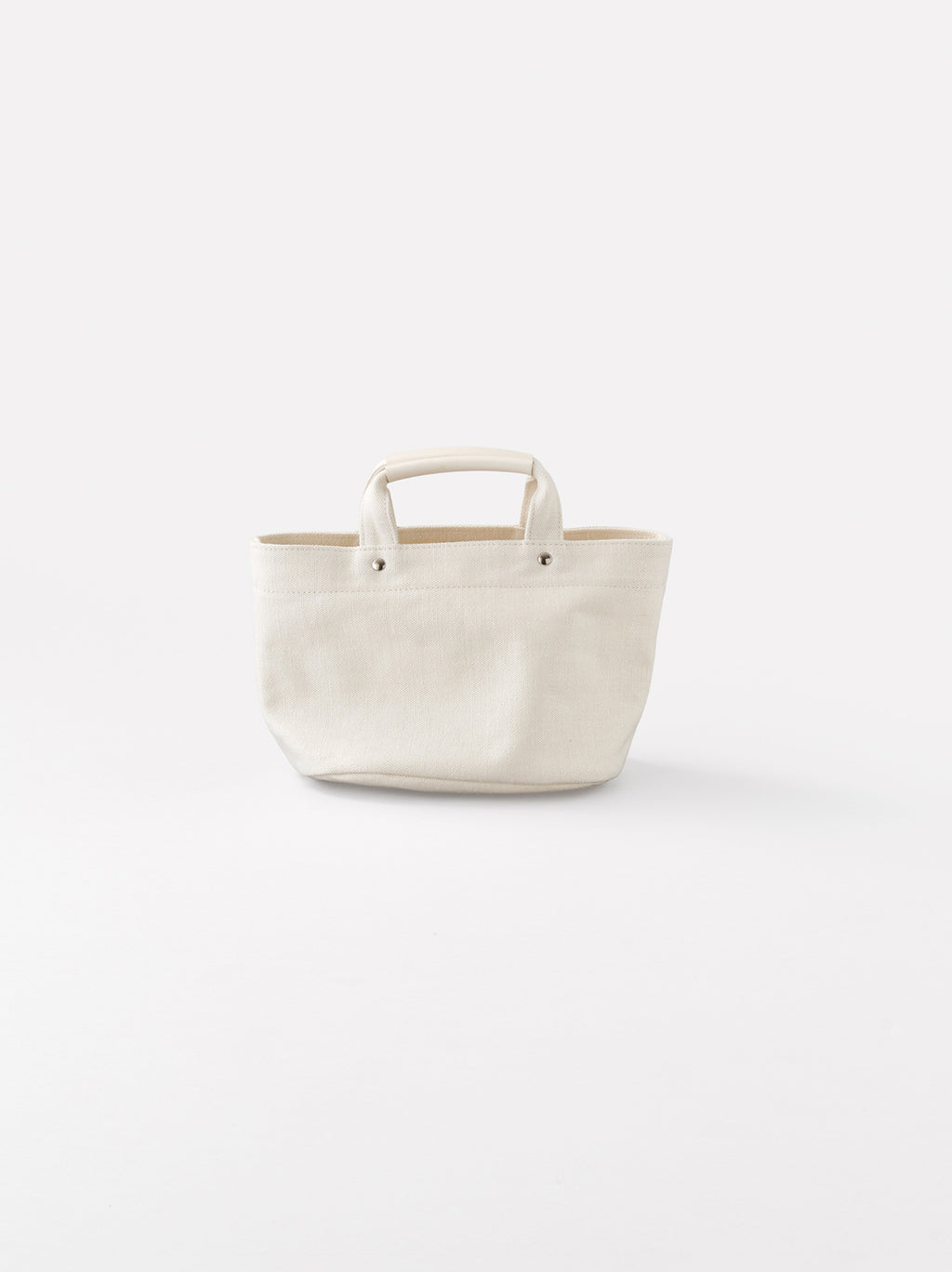 オリジナルのリネンキャンバスを使用したトートバッグのXXSサイズ。財布と携帯電話など身軽な外出に適したサイズ感。内側にPVC加工を施しているため、水が浸透しにくい特性がある。持ち手にはカウレザーを使用。サイズはStandard, Small, XS, XXSの全4種類をご用意。