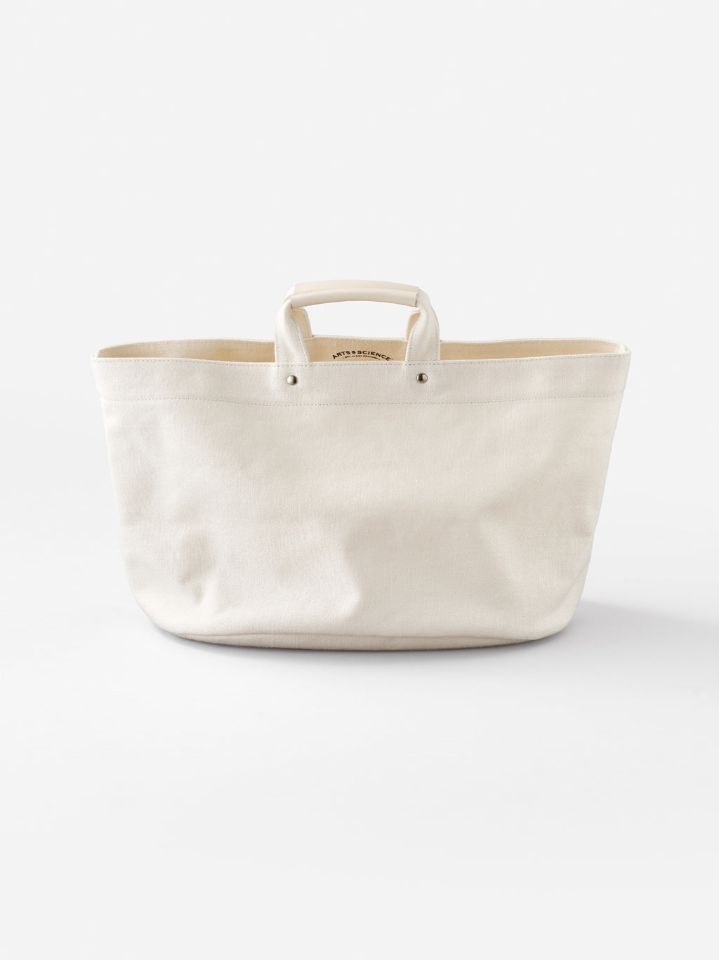 オリジナルのリネンキャンバスを使用したトートバッグのSMALLサイズ。底のマチも広く収納力があるため、ピクニックなどのアウトドアは勿論、工具入れとしても。内側にPVC加工を施しているため、水が浸透しにくい特性がある。持ち手にはカウレザーを使用。サイズはStandard, Small, XS, XXSの4種類をご用意。