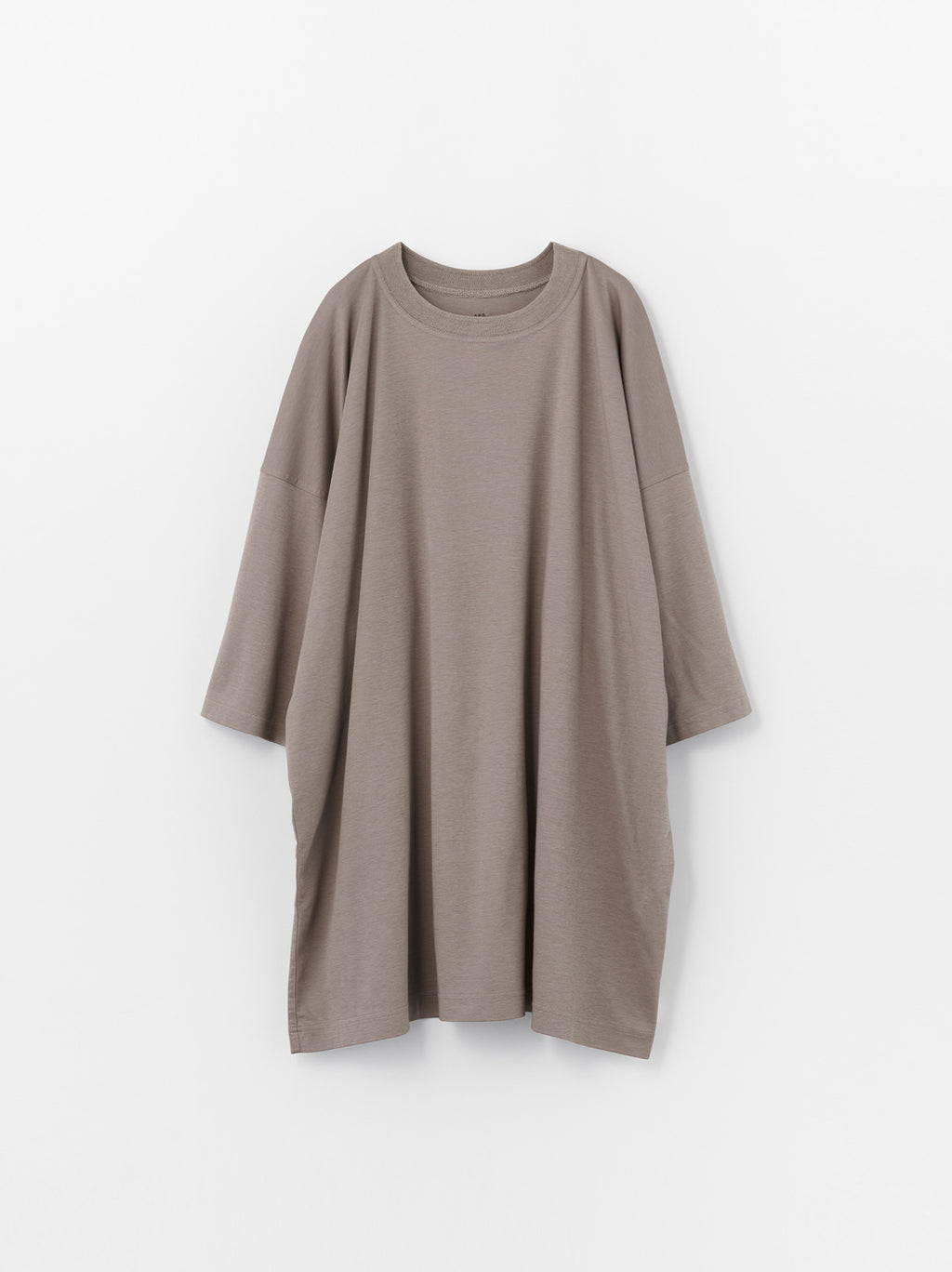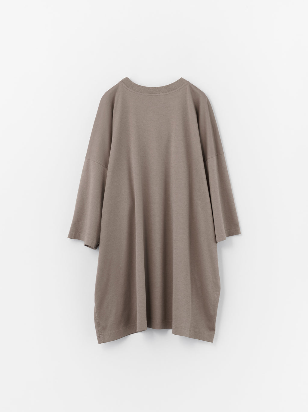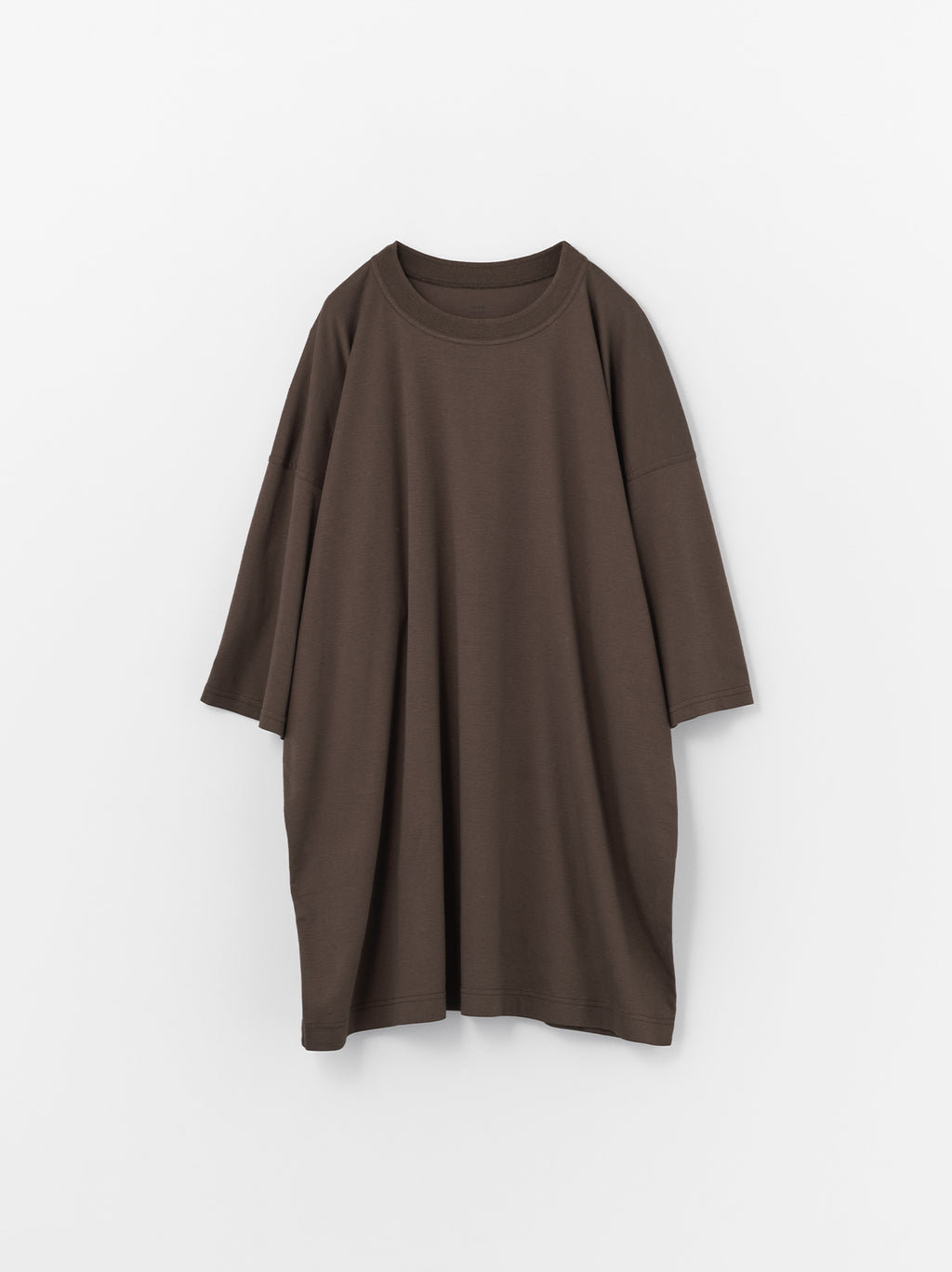 オーバーシルエットのTシャツ。美しい光沢感と上質な滑らかさが特徴の生地は、柔らかく、肌触りも良いため、リラックスできるルームウェアとしての提案。Dark gray beige、Brown、Navy、Blackの4色展開。同素材のBack pocket tuck pajama pantsと合わせてセットアップで楽しみたい。