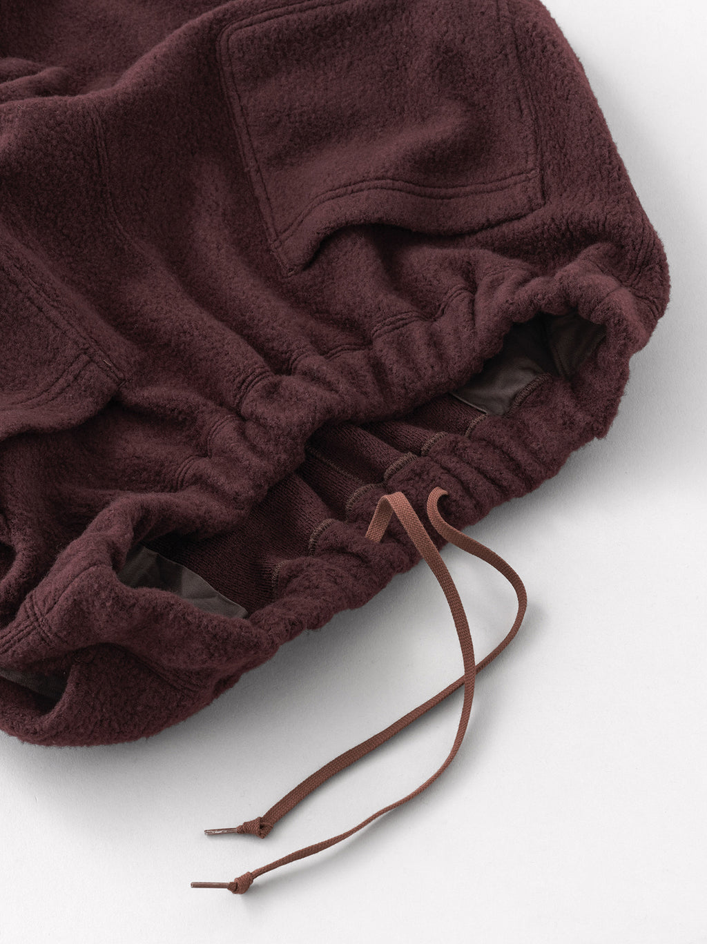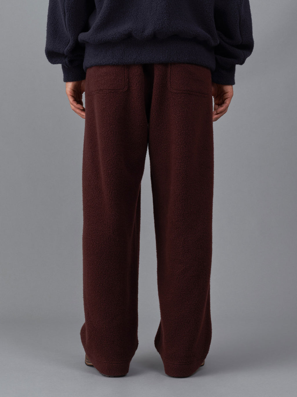 上質なウールボアフリース生地を使用した、Relax mountain tapered pants。ゆったりとしたワイドシルエットと少しテーパードさせた裾が特徴。シンプルで動き易く、快適な穿き心地のパンツ。ウエストはゴム仕様のイージースタイル。丁寧に編み上げた生地は、仕上げでじっくりと縮絨をかけており、密度を高めているため、保温性が高く、暖かい。同生地のStand collar simple cardigan、Bulky sweat shirtも展開。