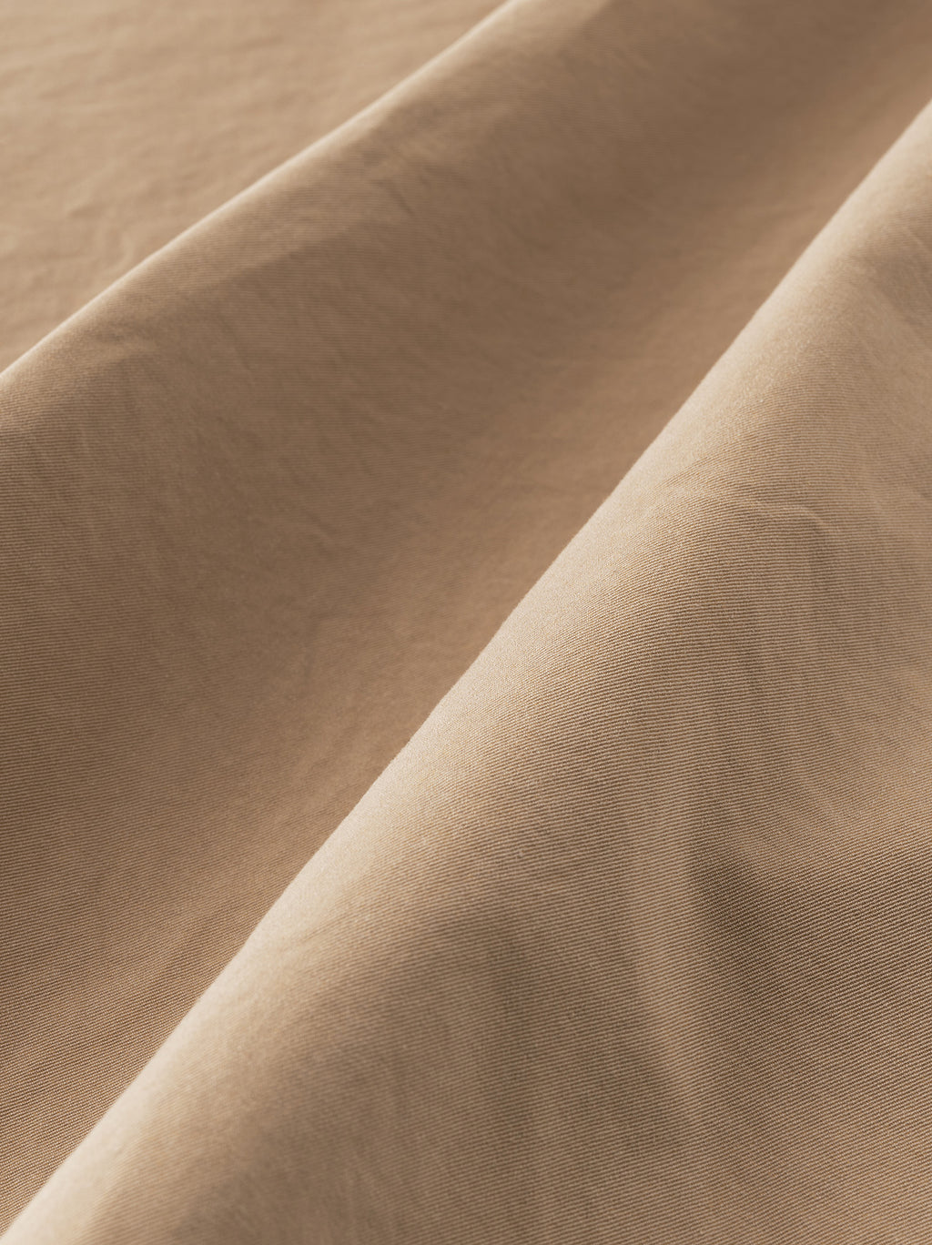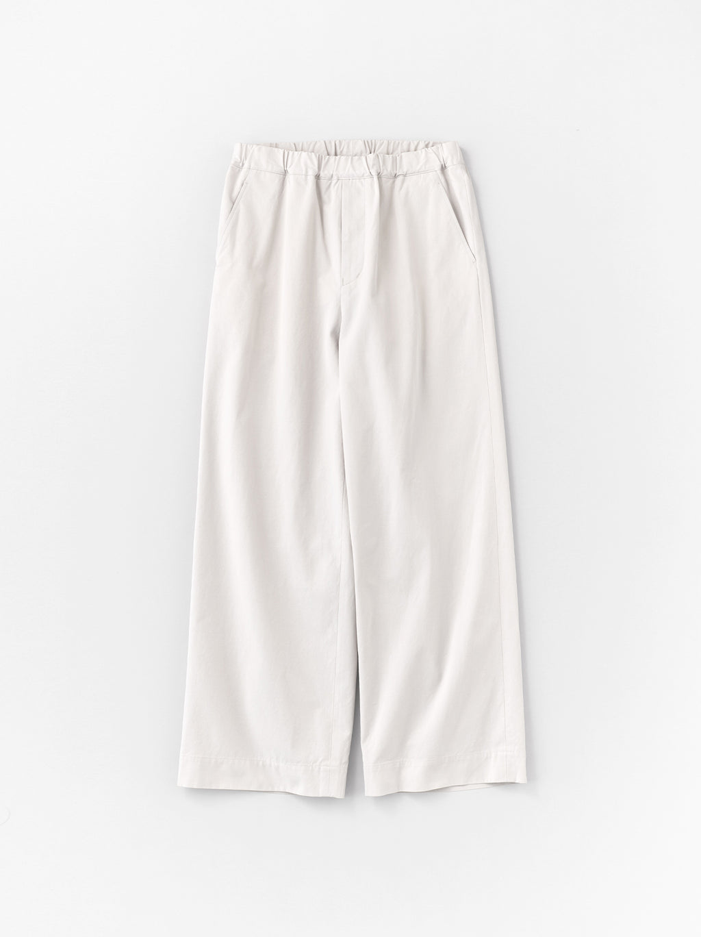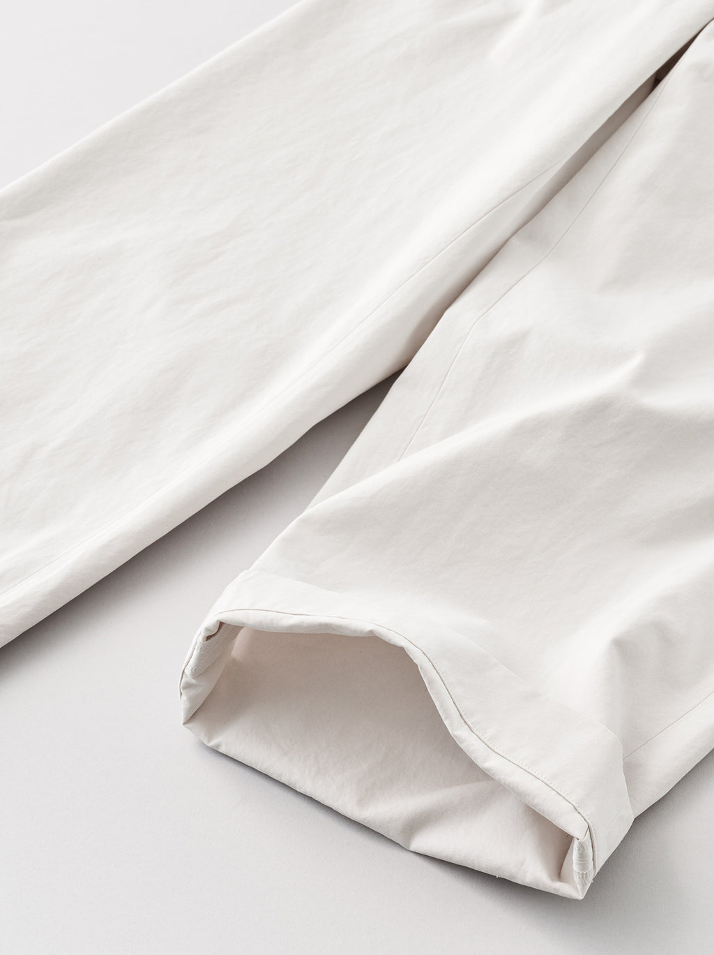 A&S定番のStandard easy tapered pantsをワイドシルエットにアレンジしたStandard easy wide pants。腰から裾までゆったりと自然に落ちるシルエットが特徴。股上が深く、ウエストとヒップ周りにゆとりがあるため、軽やかに着用することができる。生地は1920年代のヴィンテージのトレンチコートを参考に、その着古した風合いを再現させるため、特殊な後加工を施した先染めシャンブレーの綿ギャバジン。