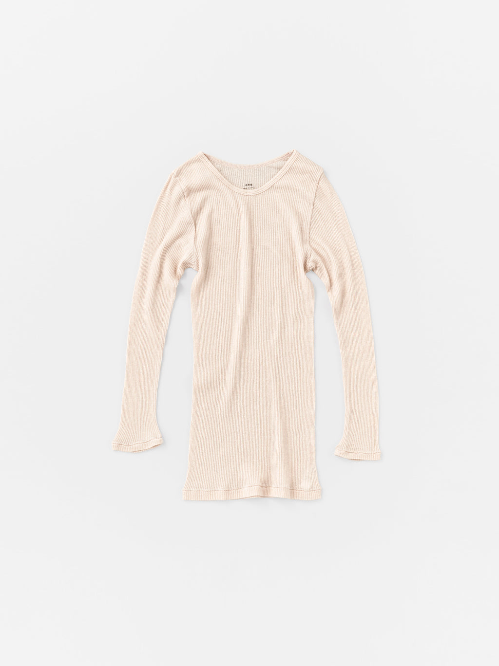 丸胴仕様のThree quarter sleeve tee。脇縫いがないため、肌当たりとフィット感が心地良いのが特徴。インナーとして合わせた時に、表に影響ない衿元や袖丈を追及。生地は今は廃業したドイツメーカーのヴィンテージ丸編機を使用して編み上げ、時間をかけてゆっくりと編み上げることで生地に空気が含まれ、柔らかい風合いの仕上がりになっている。